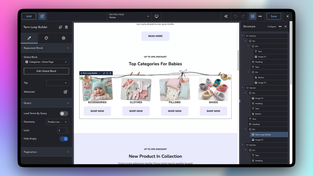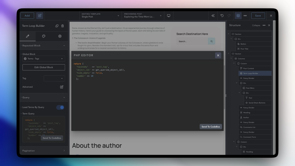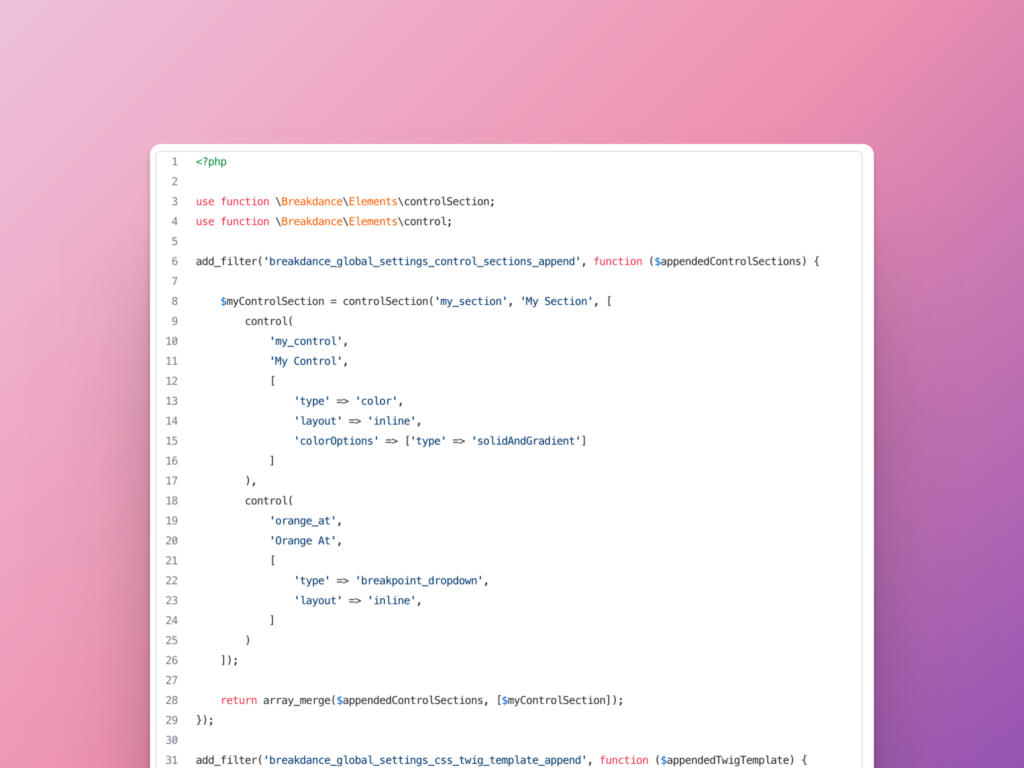 If you love to mix drag-and-drop design with custom code, you’ll love this. The new Code Editor makes writing CSS, HTML, and Twig inside Breakdance feel like using a dedicated IDE.