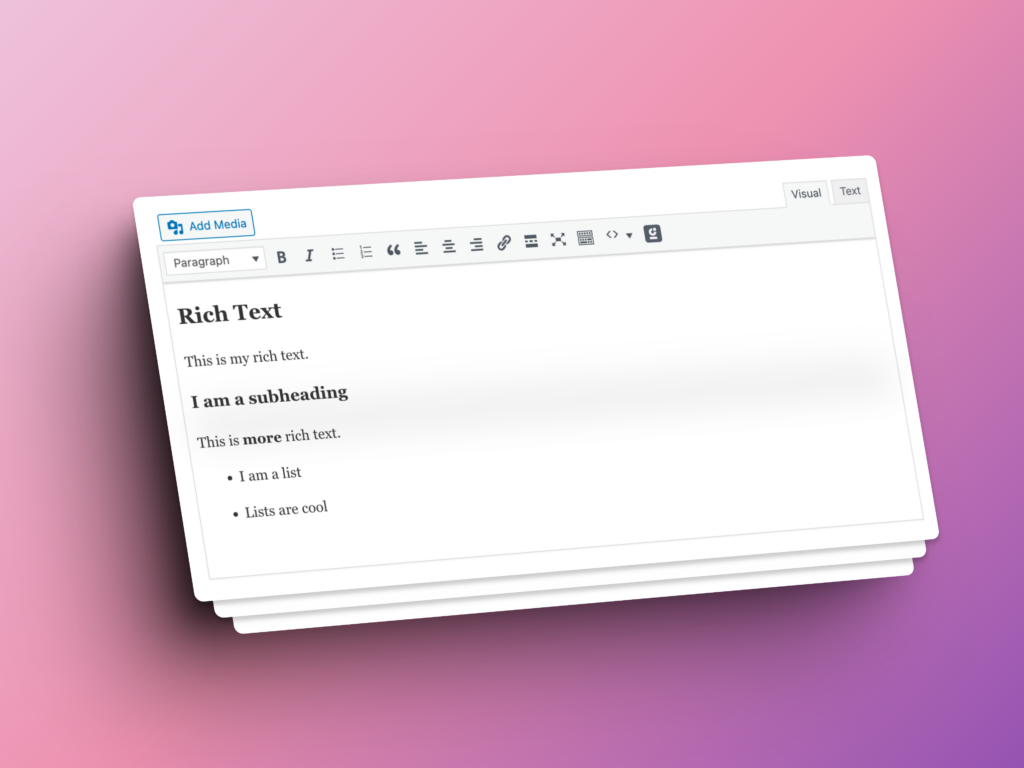 Rich Text Image Alignment: Images in rich text elements now respect WordPress alignment classes (aligncenter, alignleft, alignright). Set image alignment in the TinyMCE editor and it displays correctly.