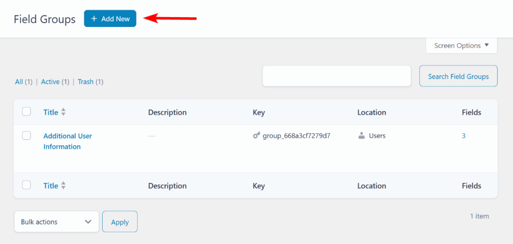 To create an ACF field, go to ACF → Field Groups in your dashboard and click “Add New.” From there, you add your desired fields like Text or Image, and use the Location rules to assign the entire group to a specific post type, such as Pages or Posts.